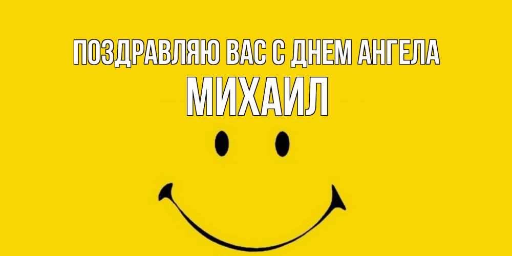 Открытка Поздравляю Вас с днем Ангела Михаил. смайл позитив желтый фон. радость и улыбка