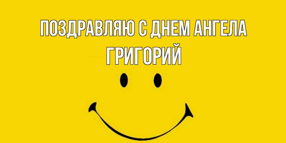 Открытка Поздравляю с днем Ангела Григорий. смайл позитив желтый фон. радость и улыбка