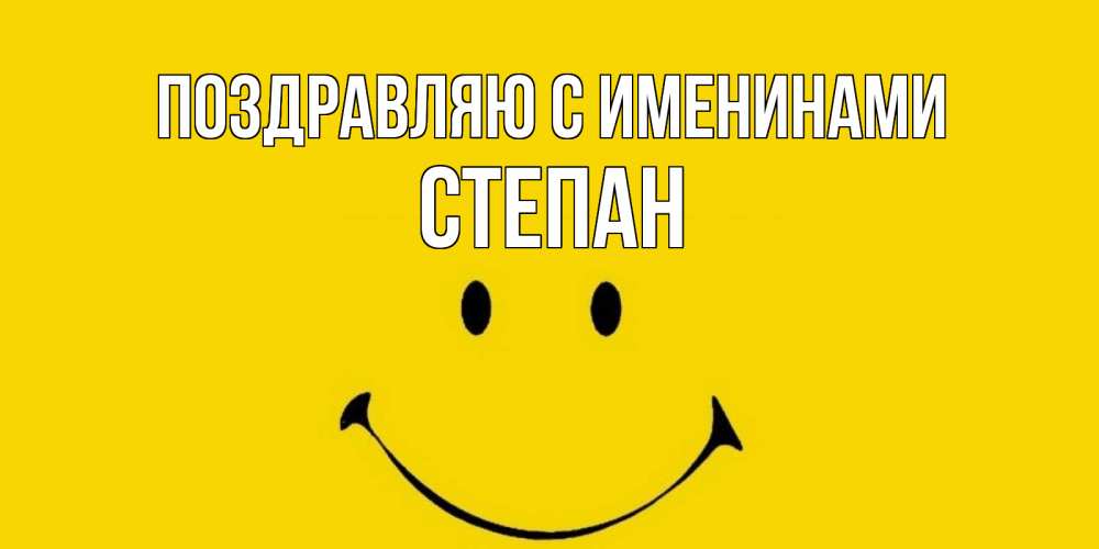 Открытка Поздравляю с именинами Степан. смайл позитив желтый фон. радость и улыбка