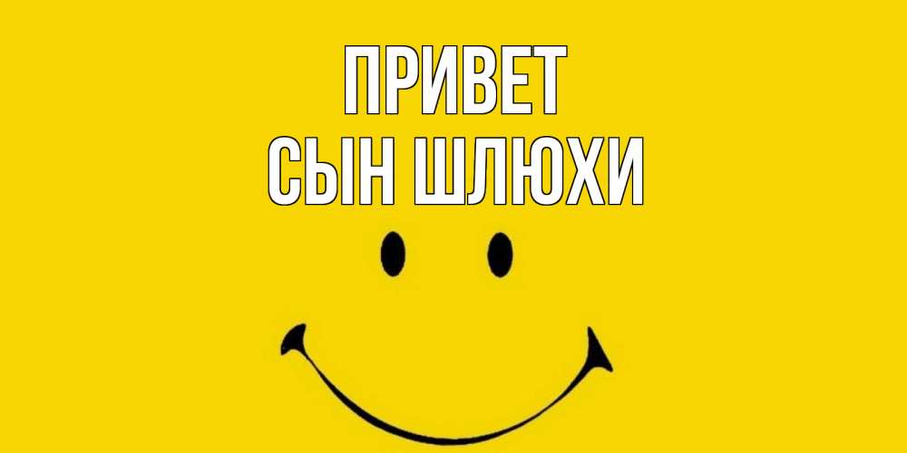 Открытка Привет Сын шлюхи. смайл позитив желтый фон. радость и улыбка