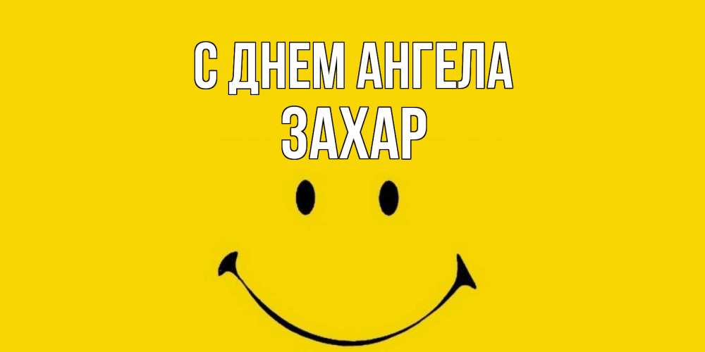 Открытка С днем Ангела Захар. смайл позитив желтый фон. радость и улыбка
