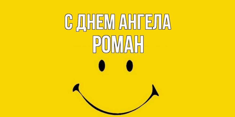 Открытка С днем Ангела Роман. смайл позитив желтый фон. радость и улыбка