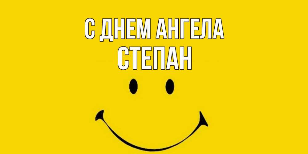 Открытка С днем Ангела Степан. смайл позитив желтый фон. радость и улыбка