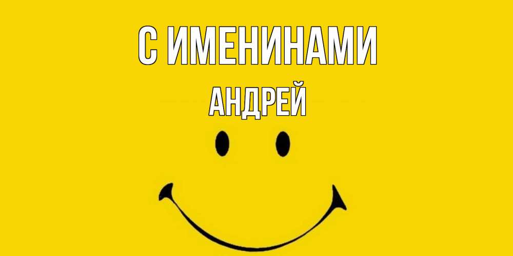 Открытка С именинами Андрей. смайл позитив желтый фон. радость и улыбка