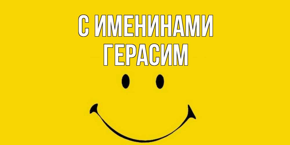 Открытка С именинами Герасим. смайл позитив желтый фон. радость и улыбка