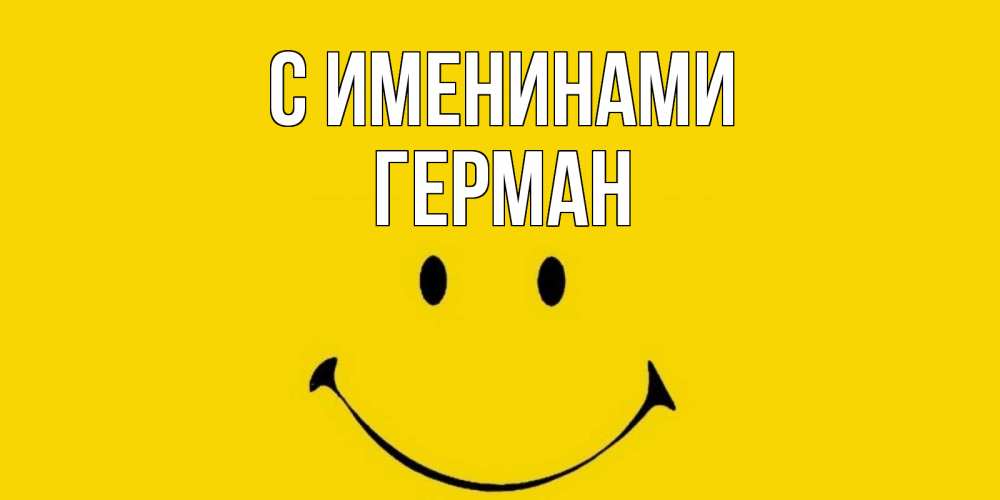 Открытка С именинами Герман. смайл позитив желтый фон. радость и улыбка