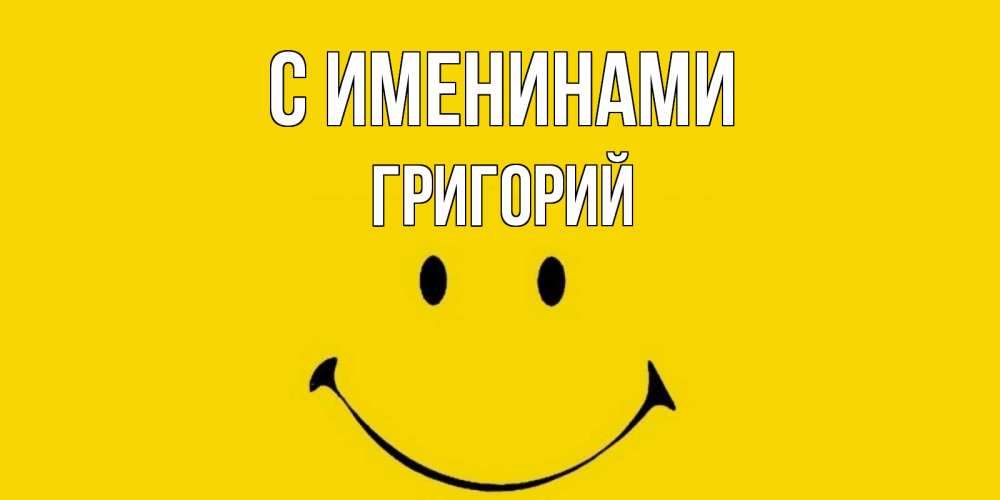 Открытка С именинами Григорий. смайл позитив желтый фон. радость и улыбка