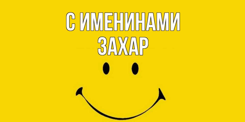 Открытка С именинами Захар. смайл позитив желтый фон. радость и улыбка