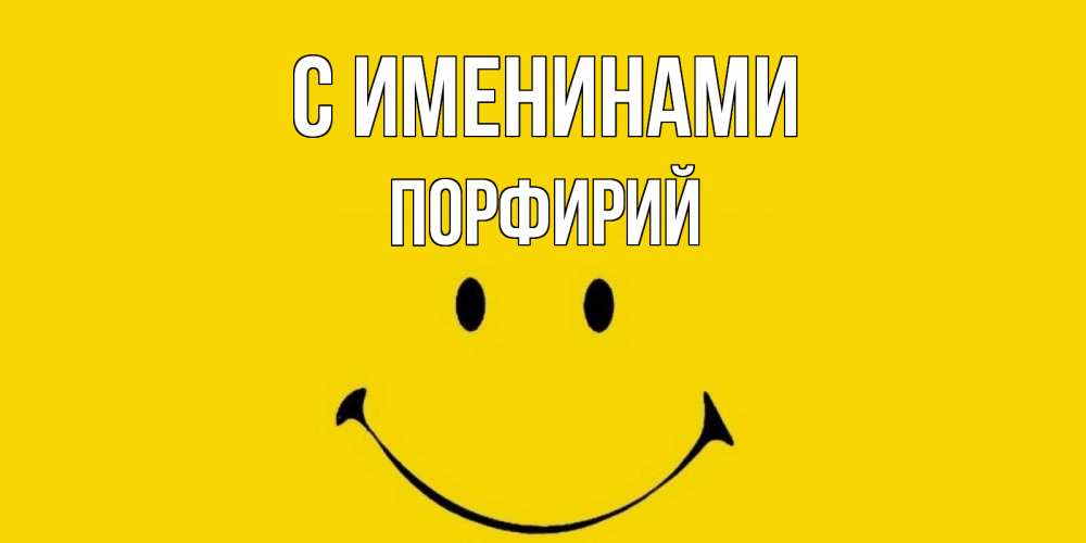 Открытка С именинами Порфирий. смайл позитив желтый фон. радость и улыбка