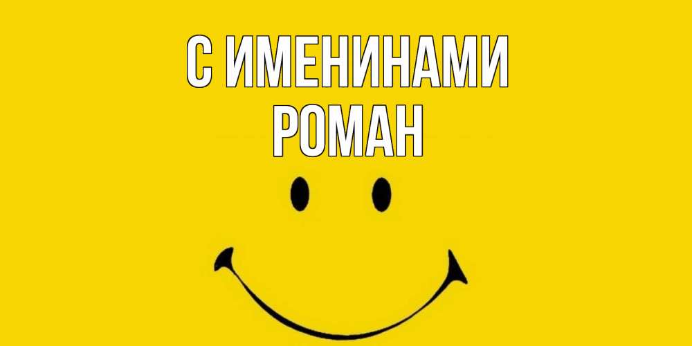 Открытка С именинами Роман. смайл позитив желтый фон. радость и улыбка