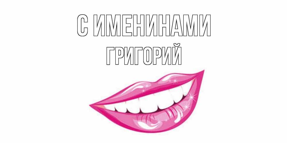 Открытка С именинами Григорий. губы улыбаются. пожелания позитивного дня