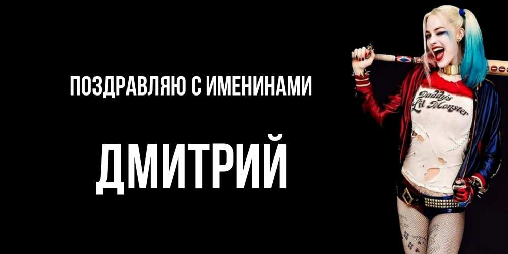 Открытка Поздравляю с именинами Дмитрий. харли квинн улыбнись. пожелания быть позитивным