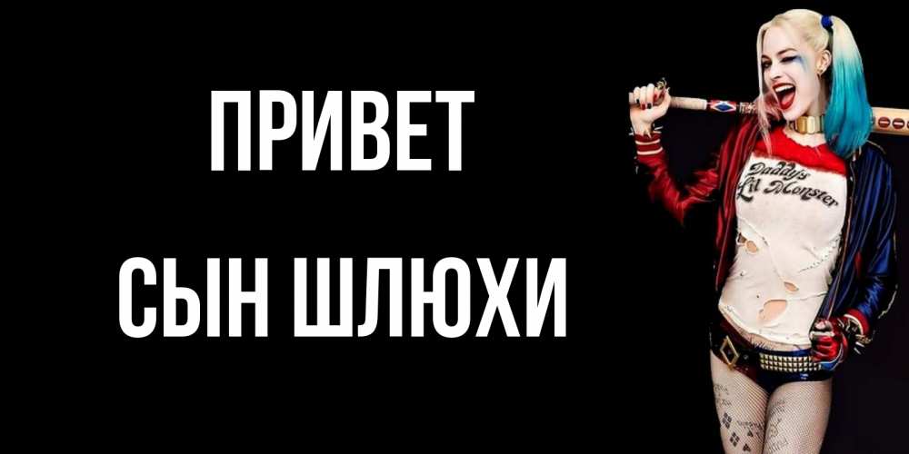 Открытка Привет Сын шлюхи. харли квинн улыбнись. пожелания быть позитивным