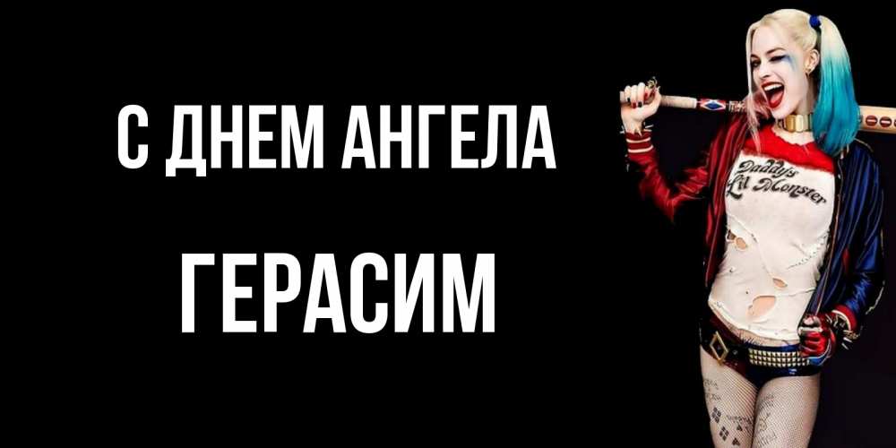 Открытка С днем Ангела Герасим. харли квинн улыбнись. пожелания быть позитивным