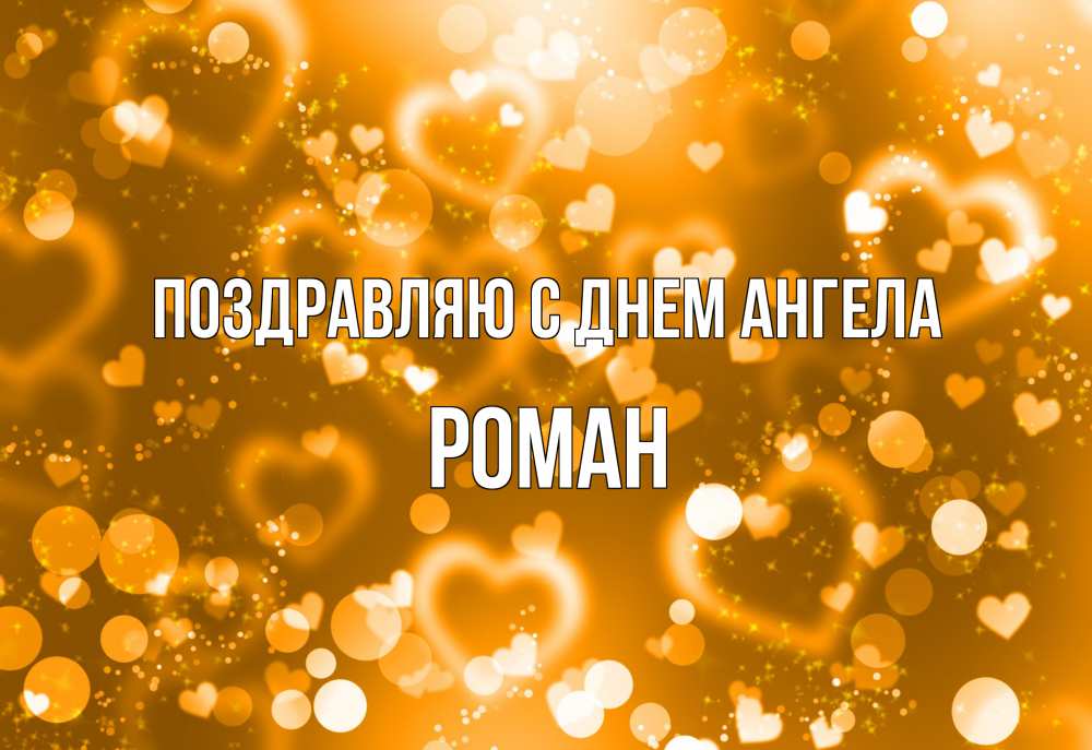 Открытка Поздравляю с днем Ангела Роман. Открытка с сердечками цветами и лентами. ленты, цветы, сердце