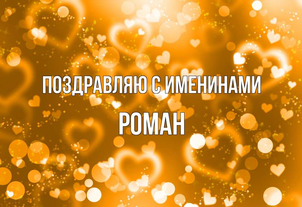 Открытка Поздравляю с именинами Роман. Открытка с сердечками цветами и лентами. ленты, цветы, сердце