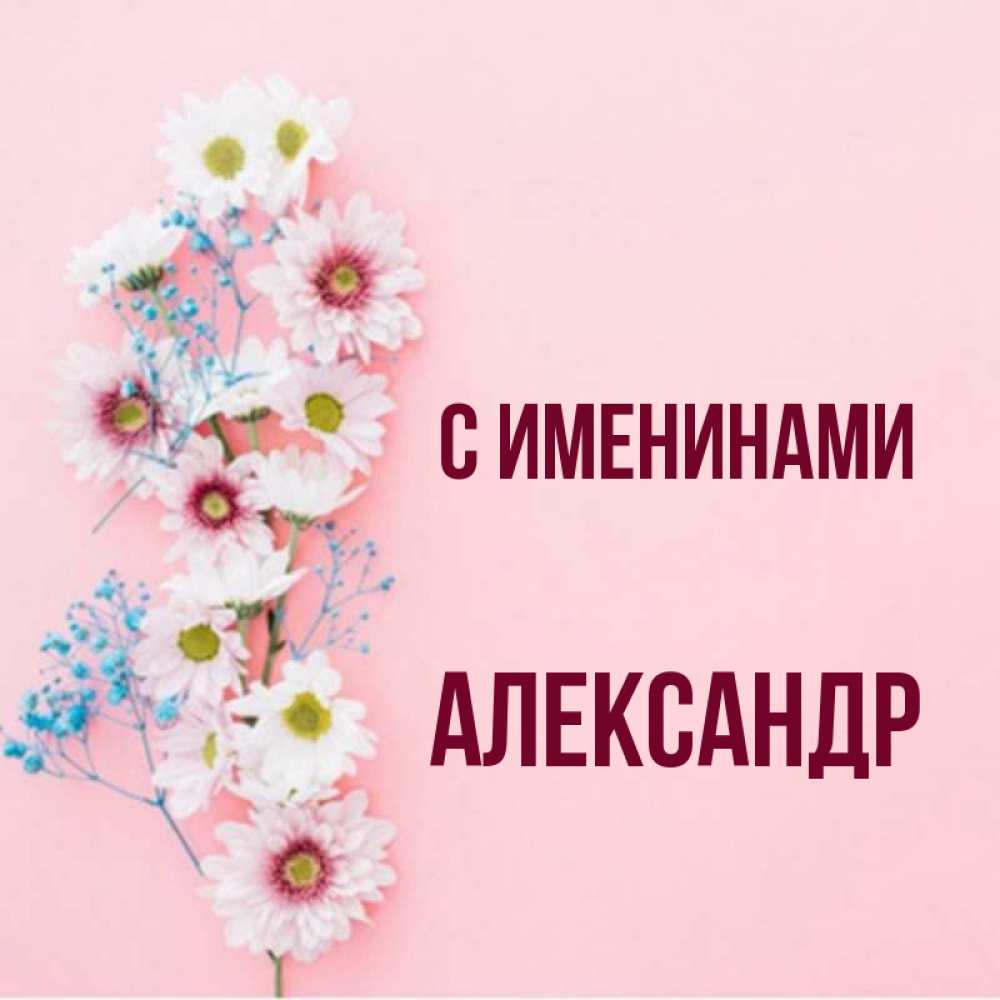 Открытка С именинами Александр. Поздравительная открытка на день рождения с белыми цветами и подписью. Родная моя с днем рождения тебя картинка с цветами белыми и голубыми