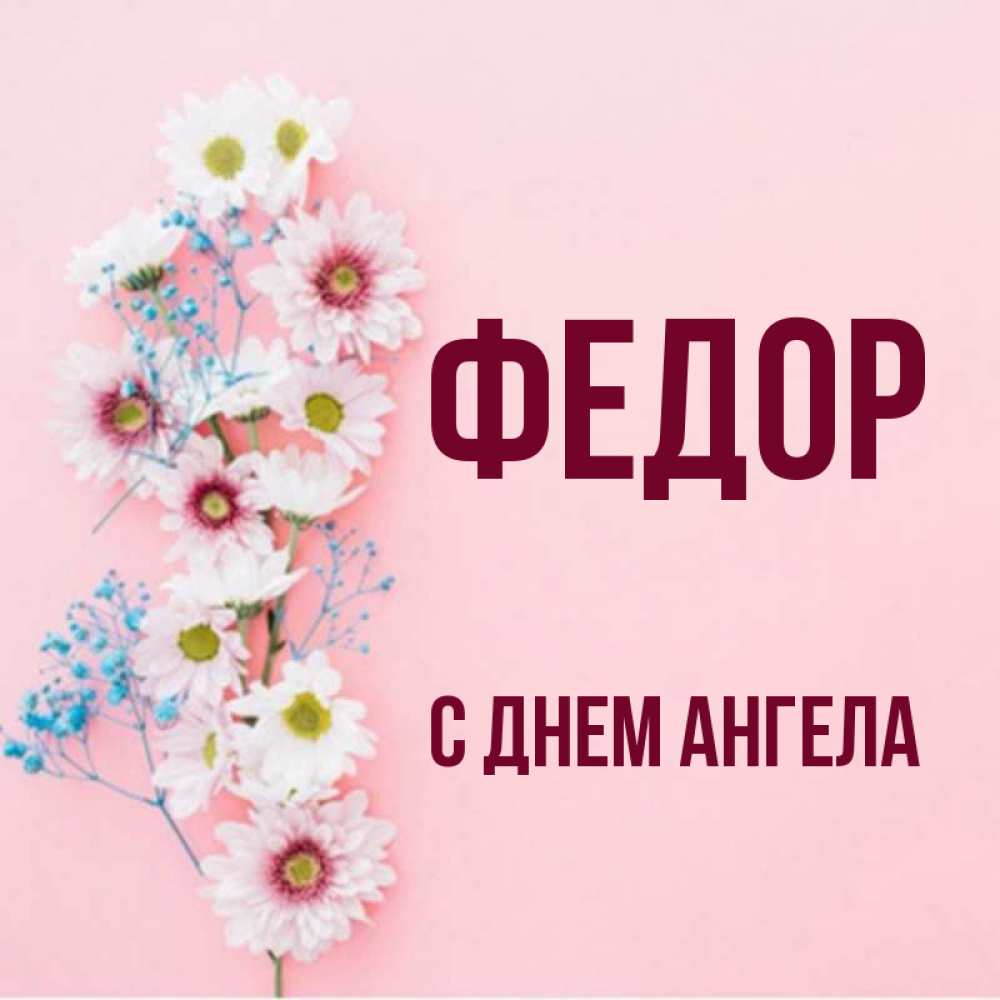 Открытка Федор С днем ангела. Поздравительная открытка на день рождения с белыми цветами и подписью. Родная моя с днем рождения тебя картинка с цветами белыми и голубыми