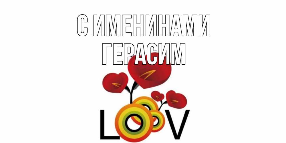 Открытка С именинами Герасим. Цветы с надписью я тебя люблю. цветы