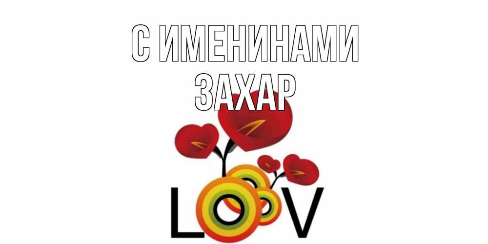 Открытка С именинами Захар. Цветы с надписью я тебя люблю. цветы