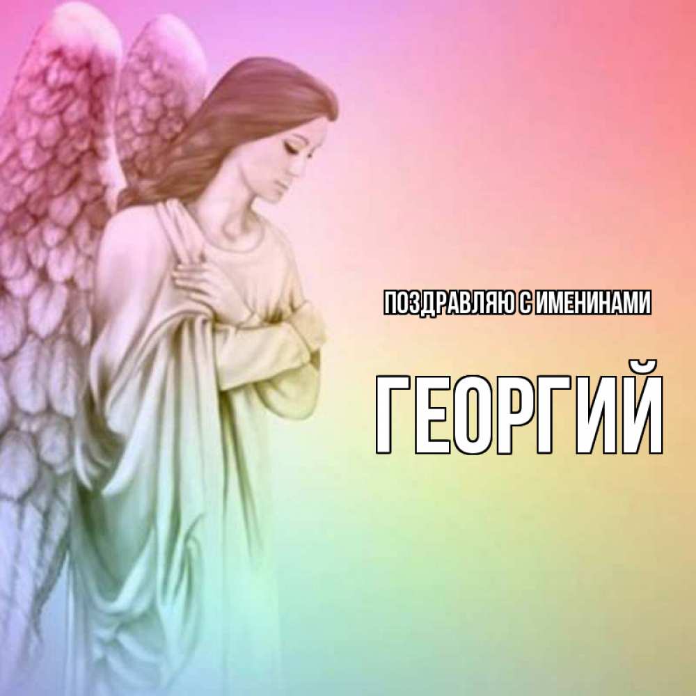 Открытка Поздравляю с именинами Георгий. Девушка ангел перламутровая. Открытка с ангелом со сложенными крыльями