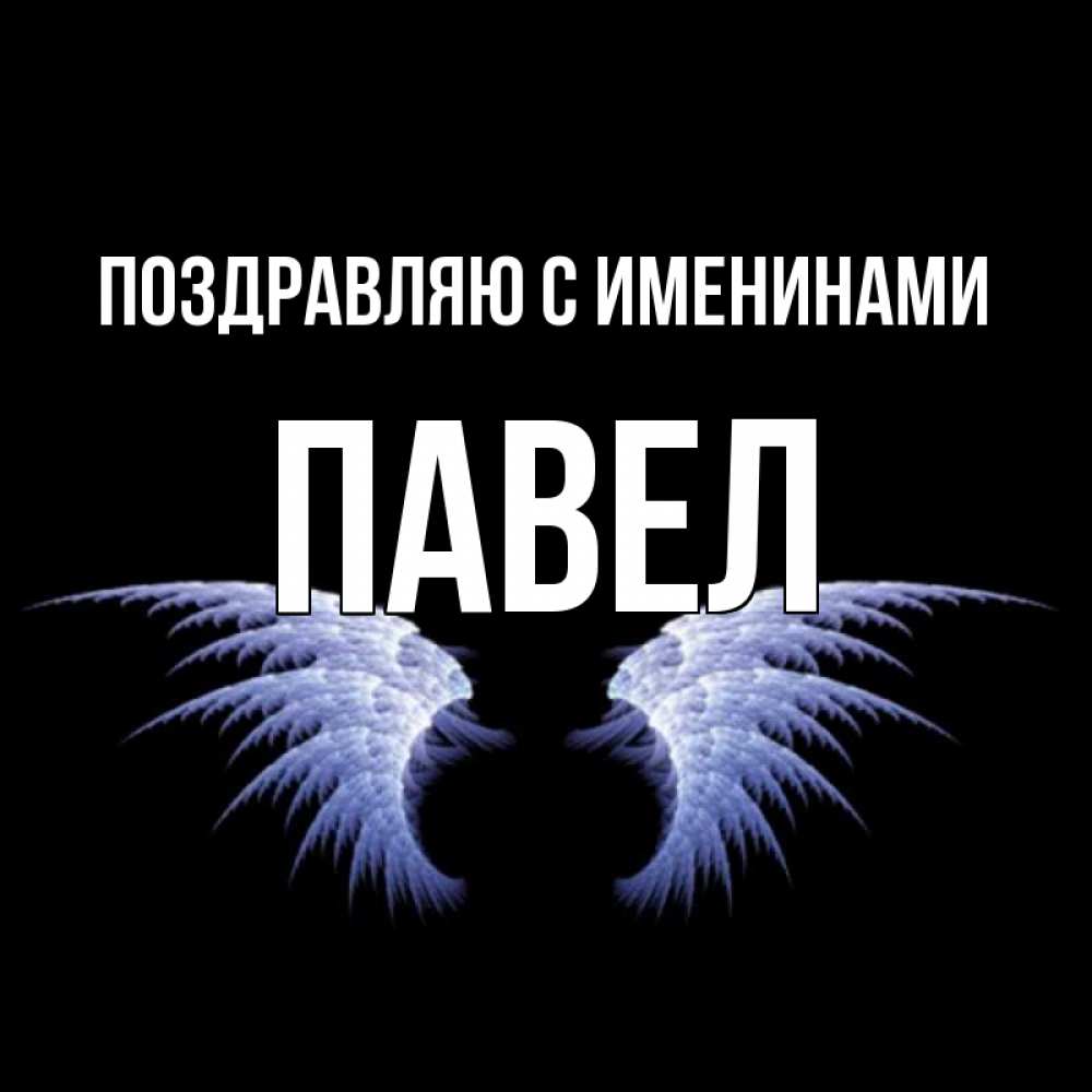 Открытка Поздравляю с именинами Павел. Открытка с подписью и крыльями ангела. ангельские крылья на черном фоне