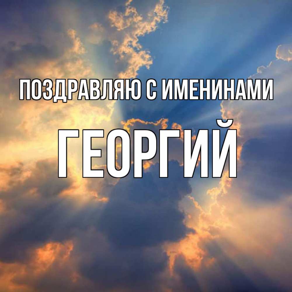 Открытка Поздравляю с именинами Георгий. хмурое небо и лучи солнца среди туч. ангельский свет сквозь облака