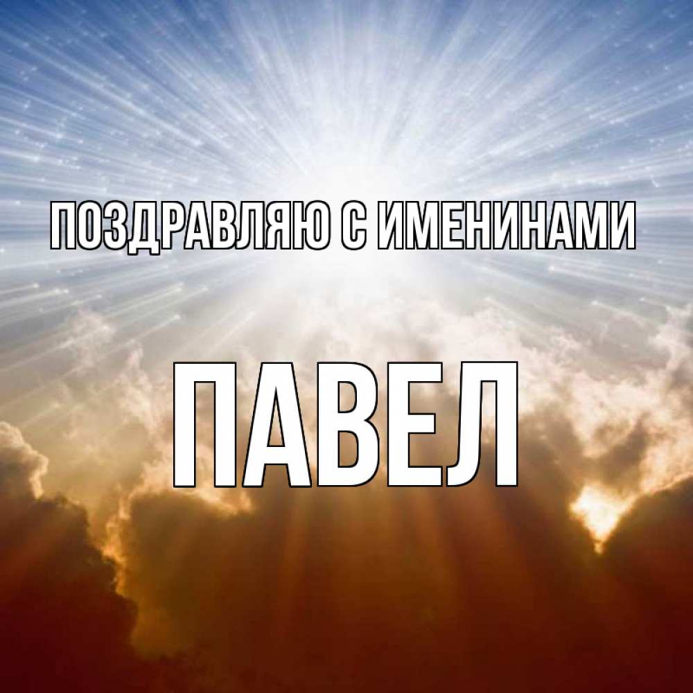 Открытка Поздравляю с именинами Павел. Красивая открытка бесплатно про ангела. ангельский свет на небе