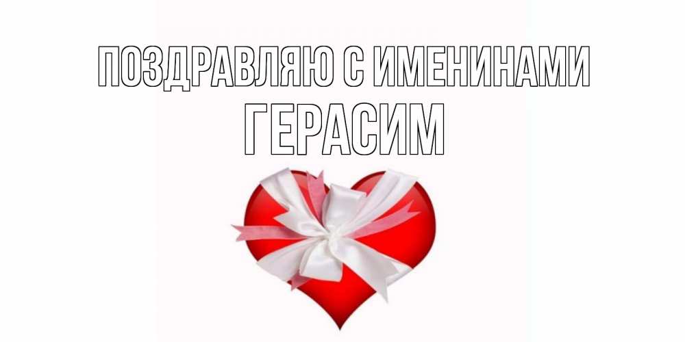 Открытка Поздравляю с именинами Герасим. Упакованное сердце с бантиком из лент. сердце, ленты, бантик
