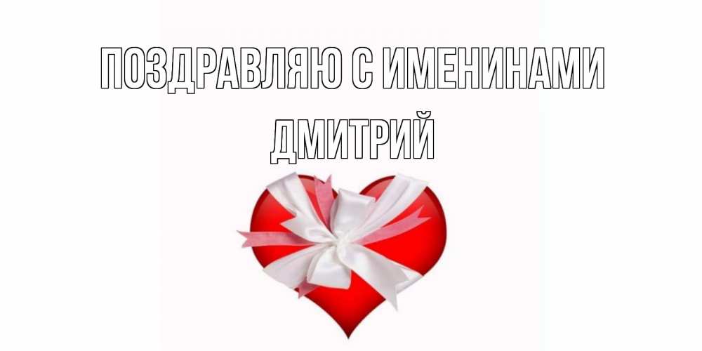Открытка Поздравляю с именинами Дмитрий. Упакованное сердце с бантиком из лент. сердце, ленты, бантик