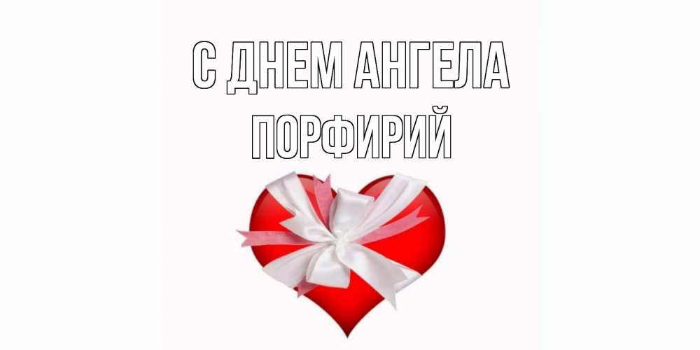 Открытка С днем Ангела Порфирий. Упакованное сердце с бантиком из лент. сердце, ленты, бантик