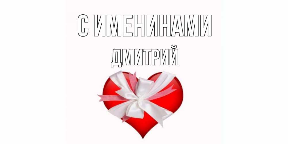 Открытка С именинами Дмитрий. Упакованное сердце с бантиком из лент. сердце, ленты, бантик