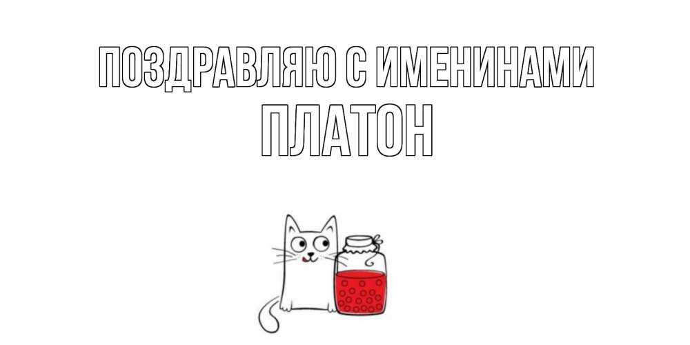 Открытка Поздравляю с именинами Платон. кот с вареньем. кот, варенье