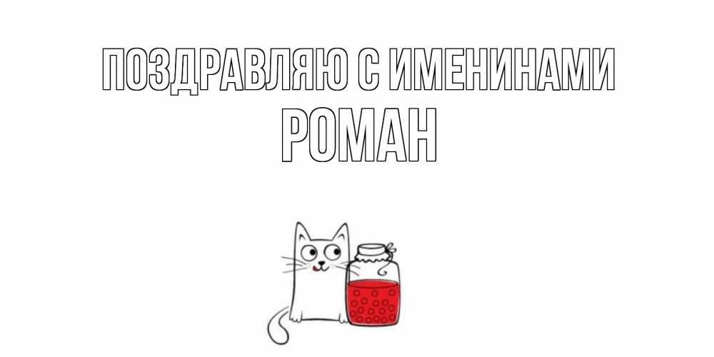 Открытка Поздравляю с именинами Роман. кот с вареньем. кот, варенье