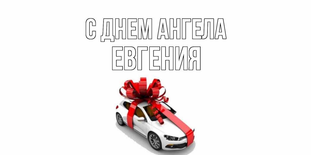 Открытка С днем Ангела Евгения. Белая машина с красной лентой. машина, лента