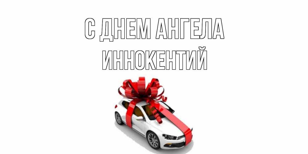 Открытка С днем Ангела Иннокентий. Белая машина с красной лентой. машина, лента