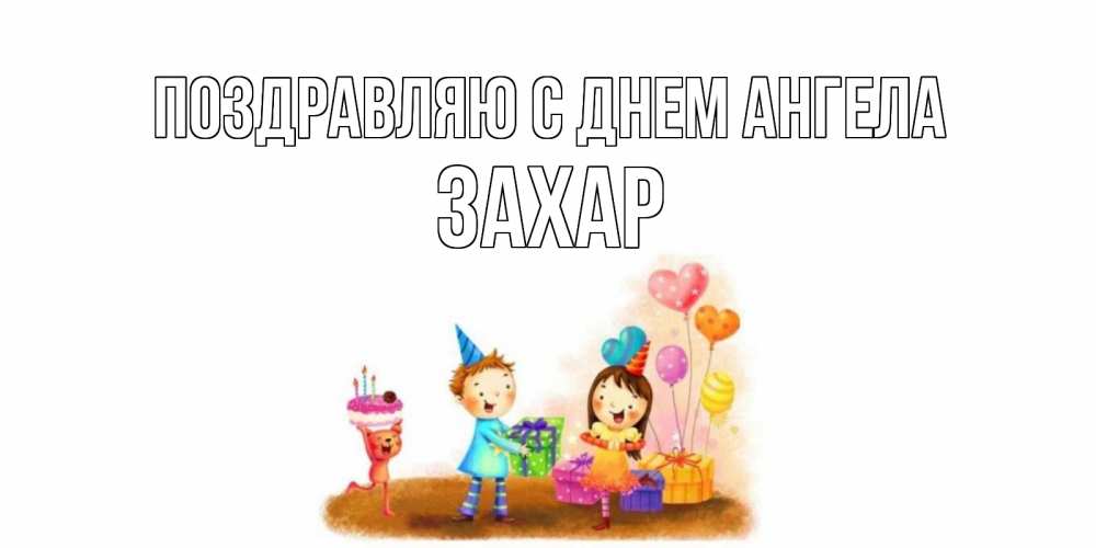 Открытка Поздравляю с днем Ангела Захар. Детская открытка с подарками. дети, подарки