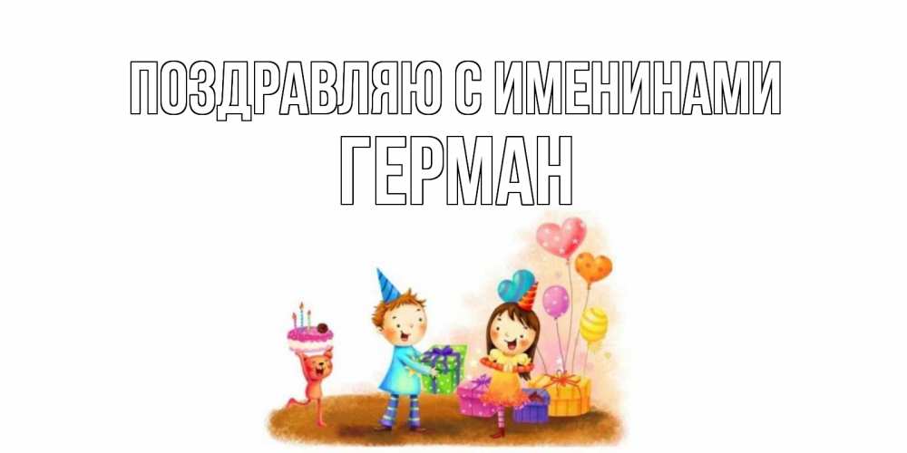 Открытка Поздравляю с именинами Герман. Детская открытка с подарками. дети, подарки