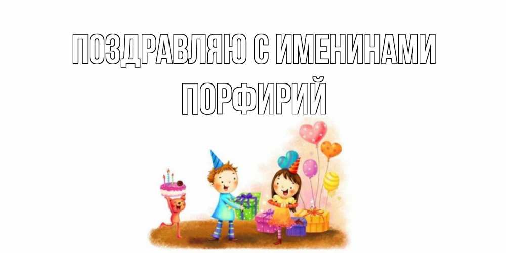 Открытка Поздравляю с именинами Порфирий. Детская открытка с подарками. дети, подарки
