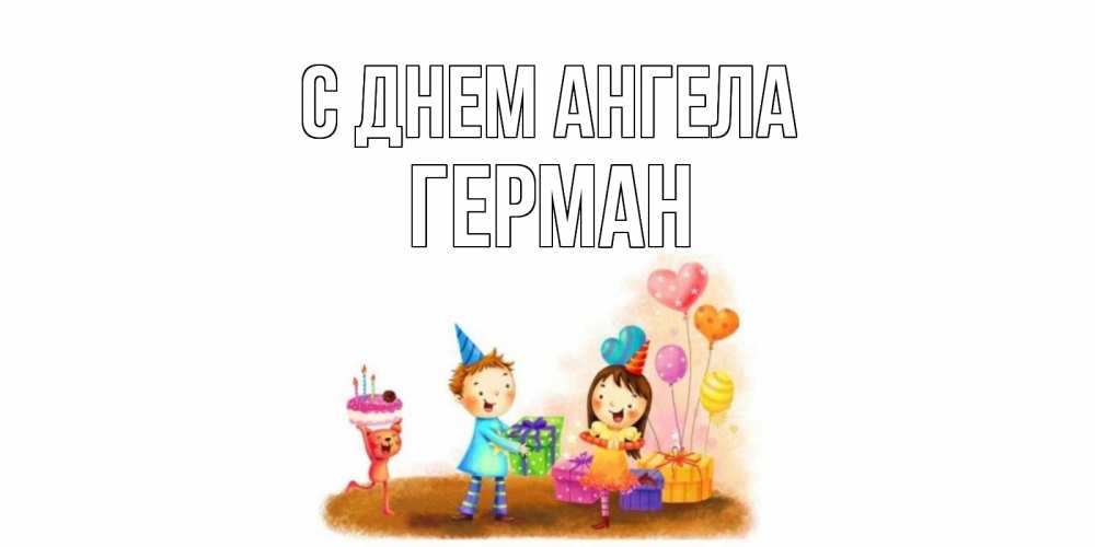 Открытка С днем Ангела Герман. Детская открытка с подарками. дети, подарки