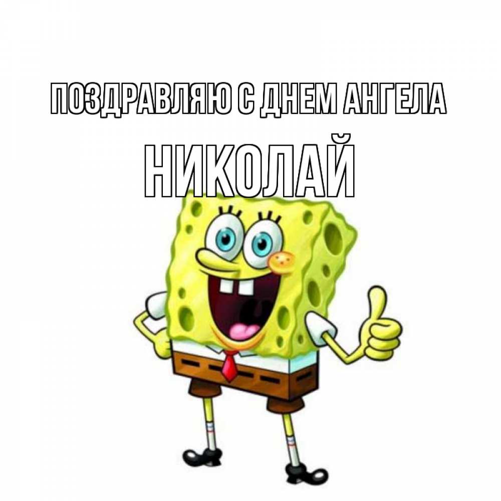 Открытка Поздравляю с днем Ангела Николай. Спанч Боб. герои мультфильмов