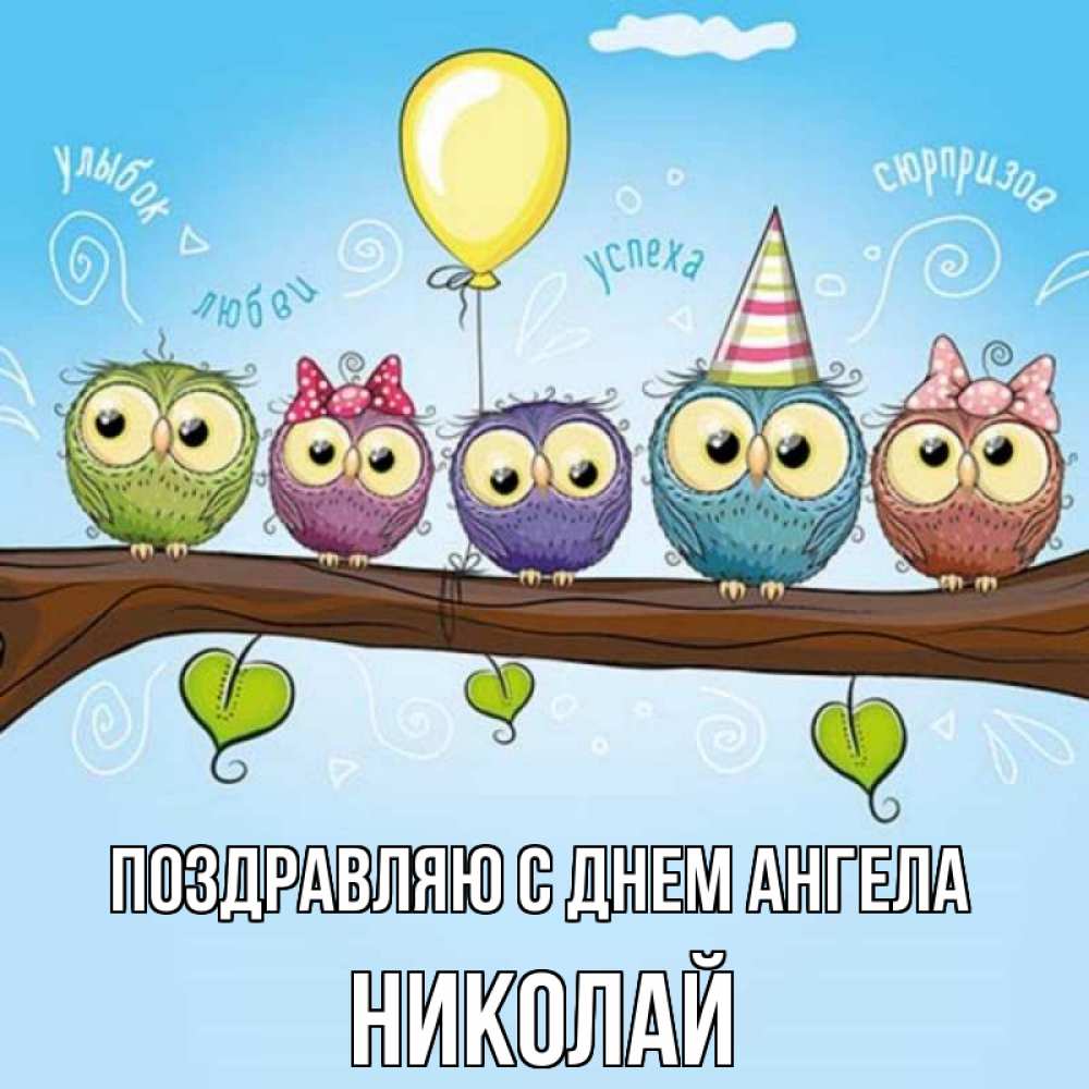 Открытка Поздравляю с днем Ангела Николай. Чудики. совы