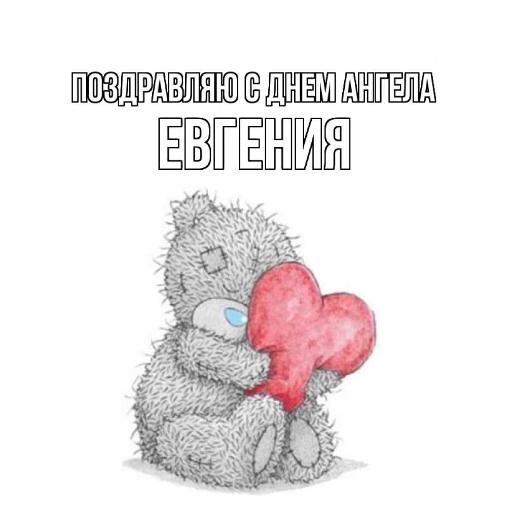 Открытка Поздравляю с днем Ангела Евгения. Мишка Тедди с сердечком любит тебя. открытка для любимой девушки или парня с медвежонком Тедди