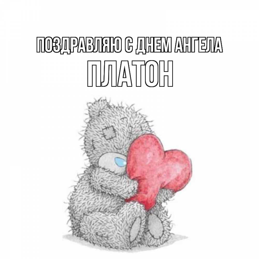 Открытка Поздравляю с днем Ангела Платон. Мишка Тедди с сердечком любит тебя. открытка для любимой девушки или парня с медвежонком Тедди