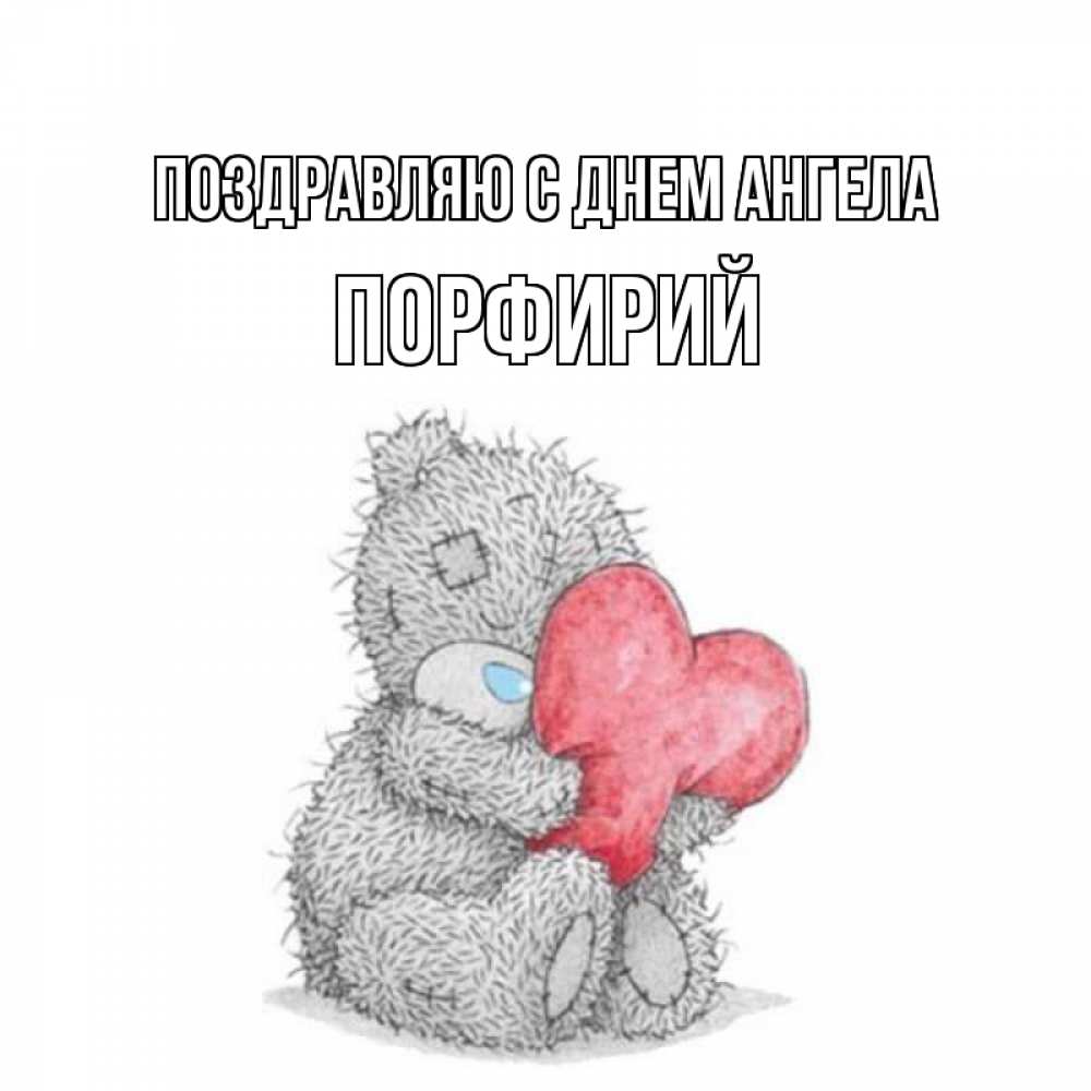 Открытка Поздравляю с днем Ангела Порфирий. Мишка Тедди с сердечком любит тебя. открытка для любимой девушки или парня с медвежонком Тедди