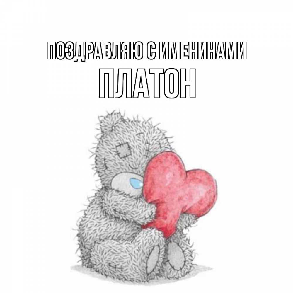 Открытка Поздравляю с именинами Платон. Мишка Тедди с сердечком любит тебя. открытка для любимой девушки или парня с медвежонком Тедди