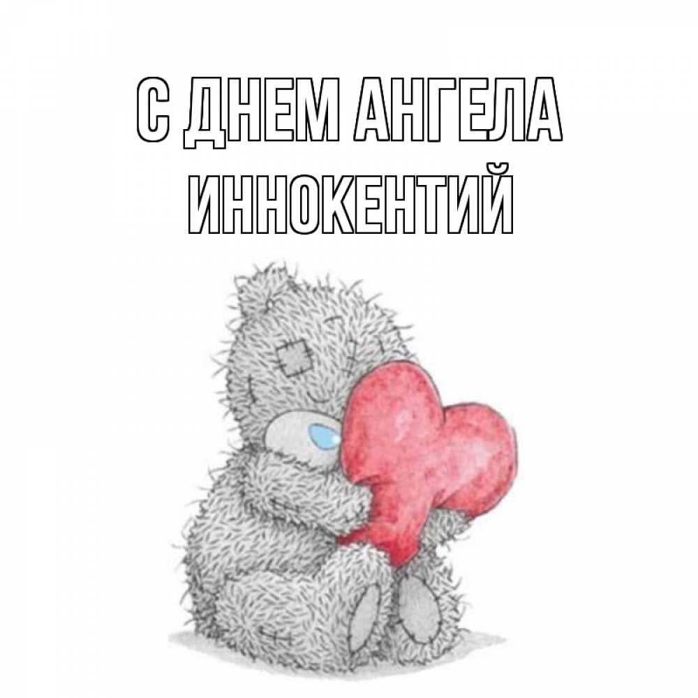 Открытка С днем Ангела Иннокентий. Мишка Тедди с сердечком любит тебя. открытка для любимой девушки или парня с медвежонком Тедди