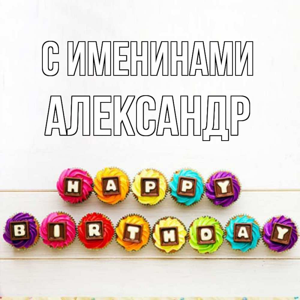 Открытка С именинами Александр. happy birthday. из кексов и шоколада