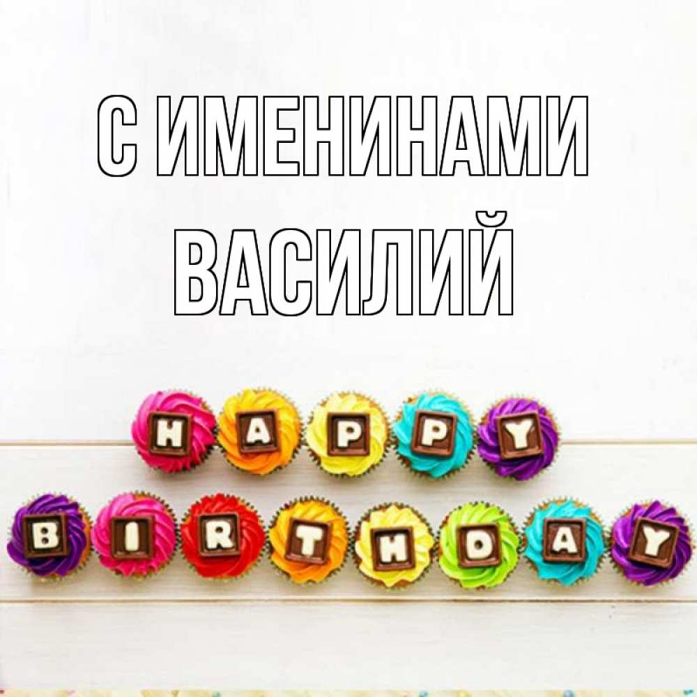 Открытка С именинами Василий. happy birthday. из кексов и шоколада