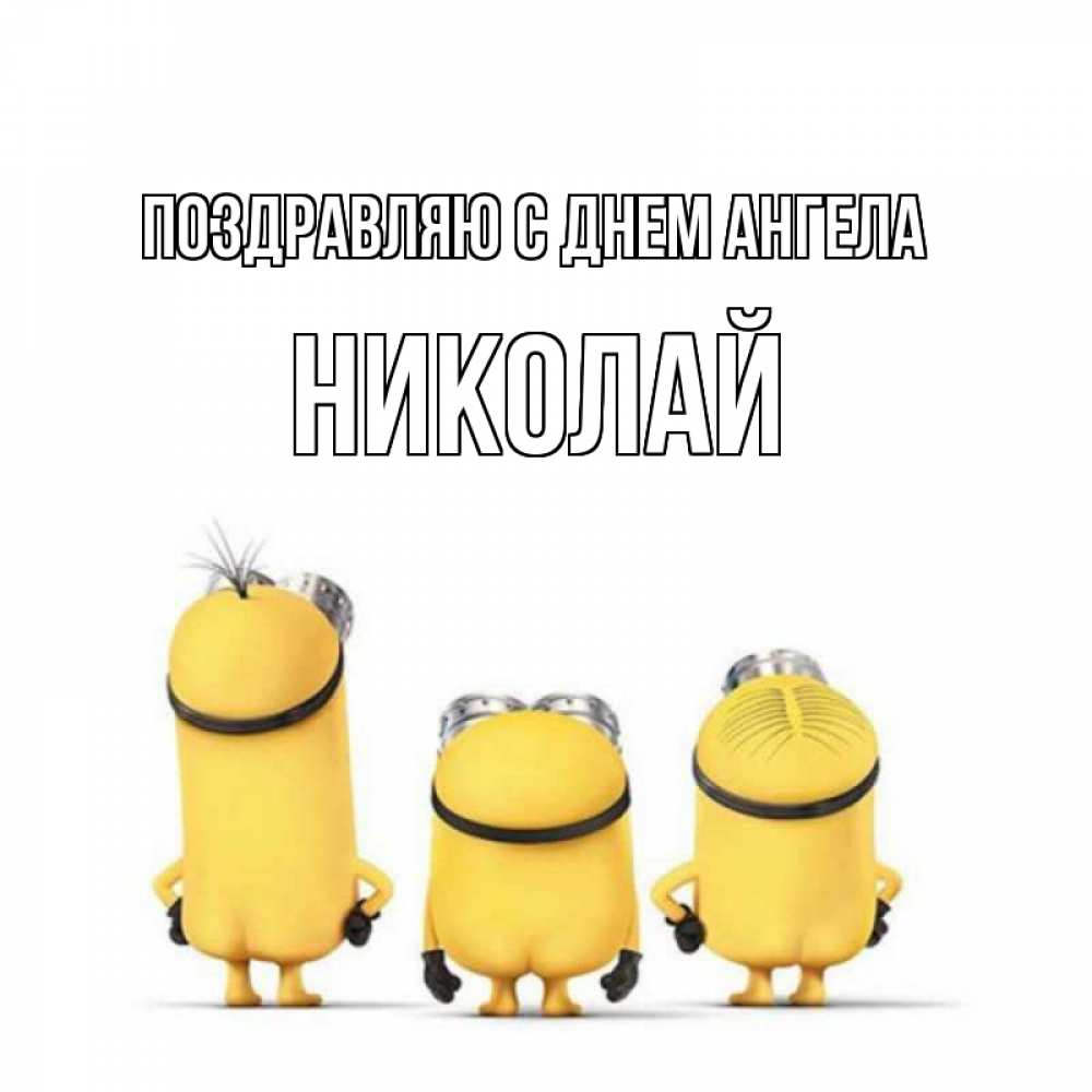 Открытка Поздравляю с днем Ангела Николай. веселье. миньоны
